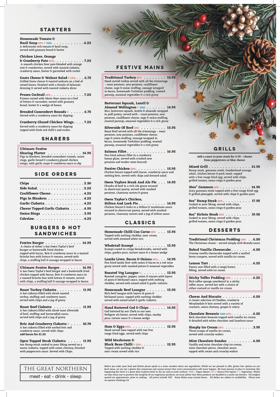 Our Festive menu is available from Monday 24th November till Sunday 4th January